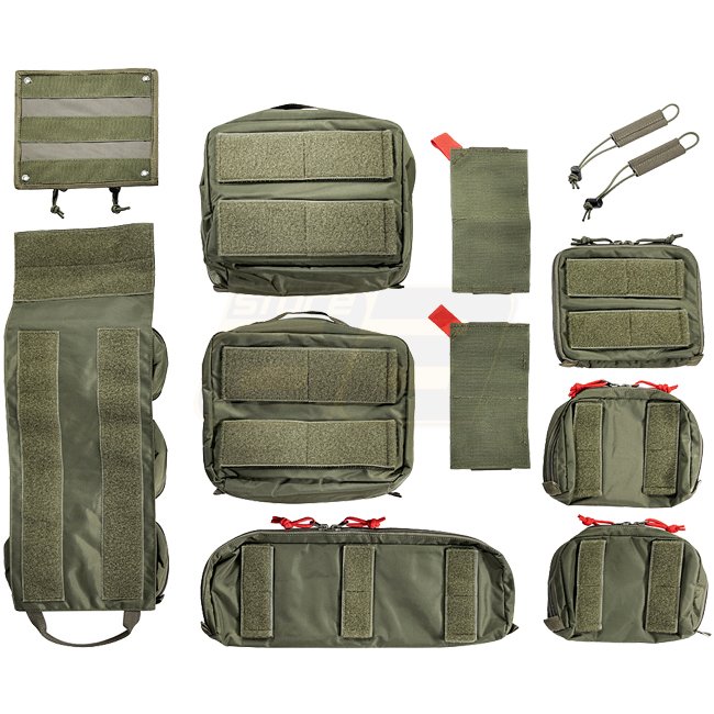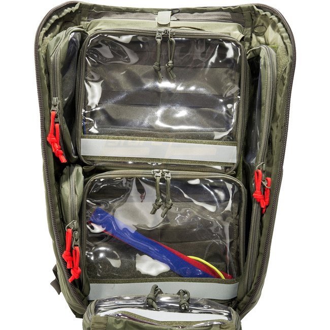 Transparent pouches with hook and loop closures for equipping the TT Modular Pack 30 as a medic backpack. Two basic pouches go in the middle and two long and two short pouches go on the sides. A removable divider has smaller pockets on it. The elastic loop set for bandages and accessories can be attached to all of the hook and loop panels. The TT Modular Medic Insert 30 Set is great for outfitting the TT Modular Sling Pack (Item 7174 ), but not all of the pieces will be used.