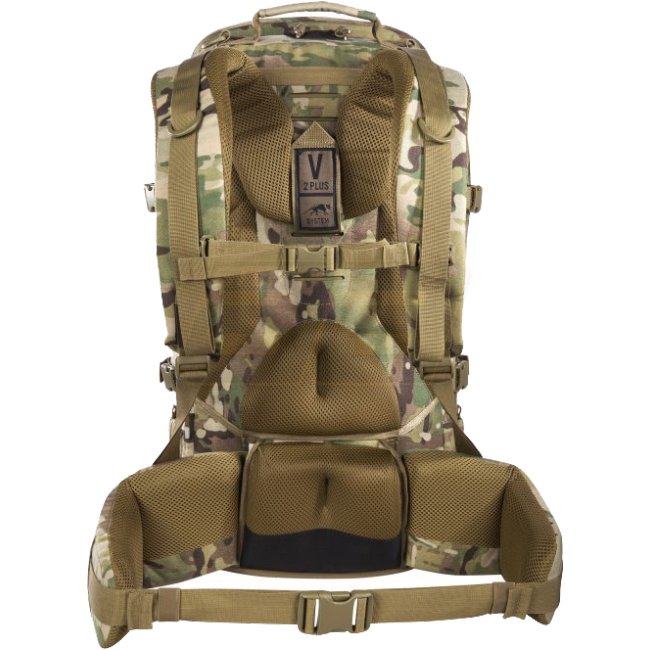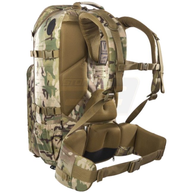 Tasmanian Tiger Modular Trooper Pack - Multicam: Universal military backpack with optimized arrangement, V2 Plus carrying system, and a total volume of 55L. Features MOLLE hook-and-loop for customization, integrated rain cover, and removable hip belt that