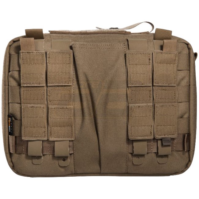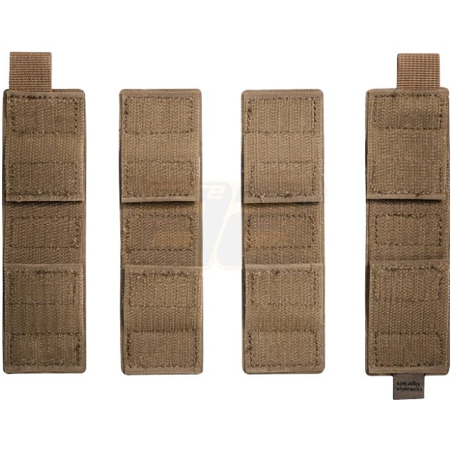Adapter for attaching pouches with MOLLE systems (or similar) to hook-and-loop surfaces. Also suitable for individual MOLLE strips.