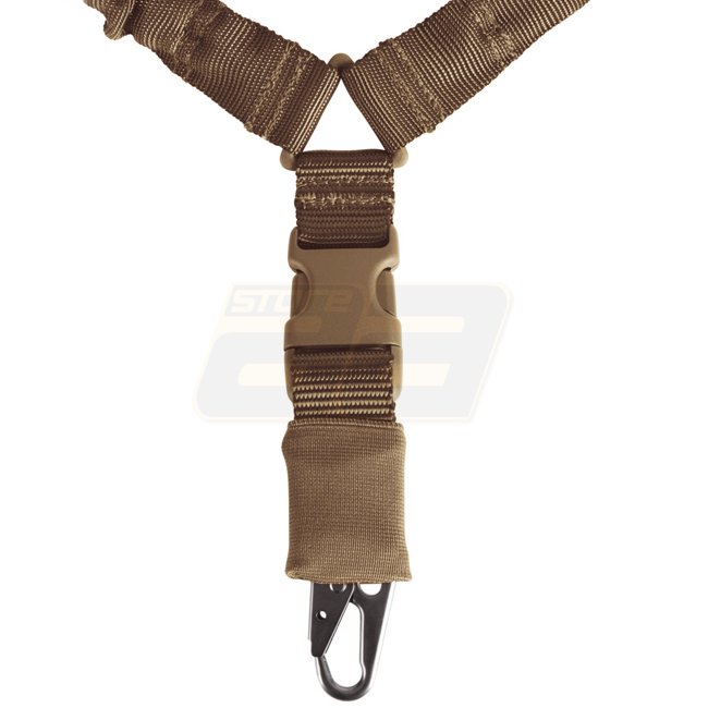 Functional one point sling made from durable 30 mm webbing with metal snaphooks for quick release. Shock cord provides flexibility while side release buckles ensure fast and safe weapon movement. Dimensions: 105 x 3 cm. Weight: 240g. Material: Polyester W