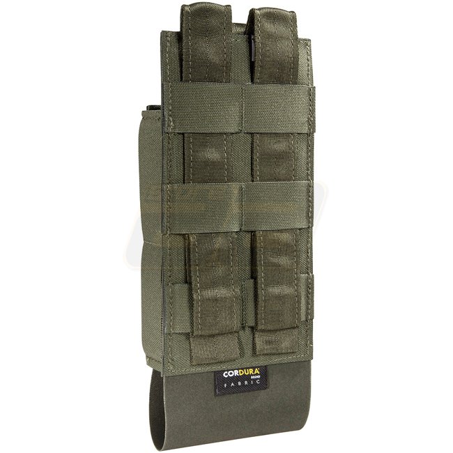 Low-profile Tasmanian Tiger Tac Pouch 2 Radio MK2 in Olive for SEM 52 S, with easy battery change design.
