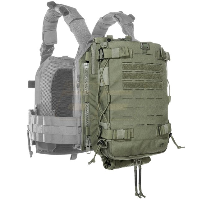 The TT Tool Pack ZP IRR is designed for the TT Plate Carrier QR LC ZP IRR, the attachment is via side zippers. The pack can also be mounted on other plate carriers on the market with the appropriate zipper length and width. In addition, In addition, the included zippered MOLLE strip allows it to be attached to plate carriers with a MOLLE scheme. An additional adapter is included for attachment to classic MOLLE straps. The fold-out main compartment is suitable for bolt cutters up to a length of 80 cm, the fold-out front compartment accommodates various entry tools, and the hooked-in tubes can also be removed. In addition, the pack has insertion options for breach pens on the sides. On the front is MOLLE in laser-cut design, the elastic side compression can be removed.