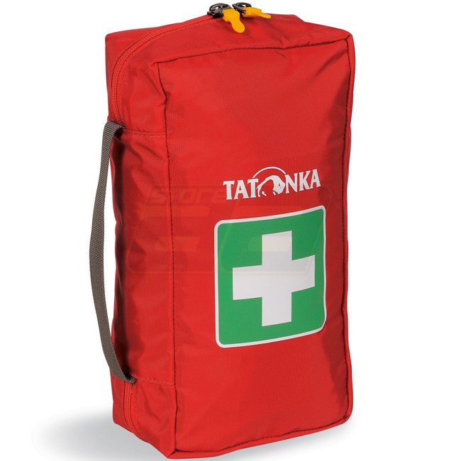 First aid bag Tatonka First Aid in size M (26 x 13,5 x 8 cm) with handle, circumferential zipper and divided main compartment (without contents).