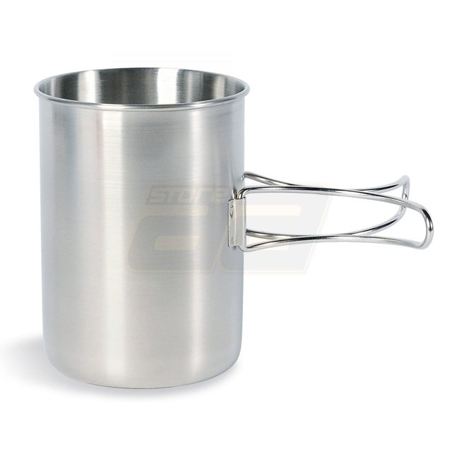 Stainless steel mug with folding handles, Tatonka Handle Mug 850, 850 ml volume, practical folding handle, suitable for Nalgene bottle, made of 18/8 stainless steel, foldable handle, measuring scale, food-safe, 10 x 13.5 cm, 0.85 l volume, 210 g weight.