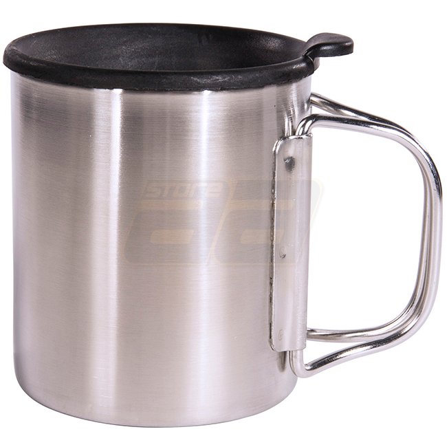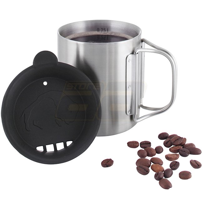 The thermo mug consists of double-walled 18/8 stainless steel and is equipped with a folding handle and volume scaling on the inside. The supplied lid provides additional insulation for the hot or cold drink.