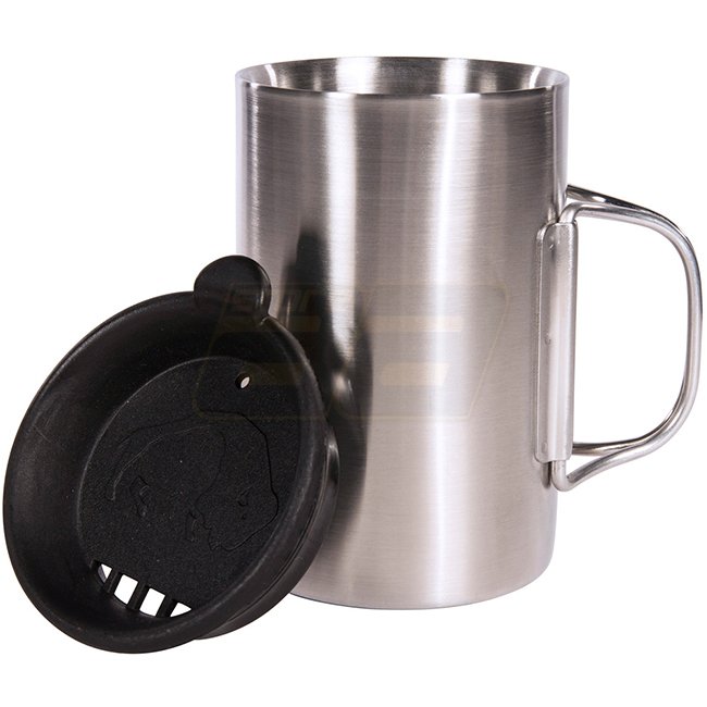 The thermo cup consists of double-walled 18/8 stainless steel and is equipped with a folding handle and volume scaling on the inside. The lid provides additional insulation for the hot or cold drink.