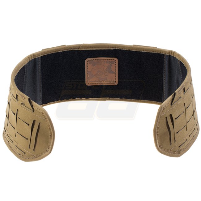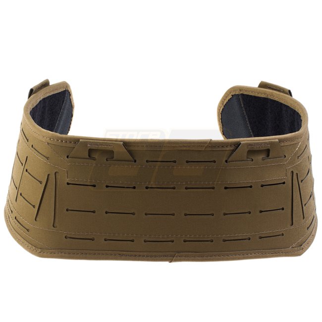 The PT4 GENIII L is a low-profile battle belt designed to be used in conjunction with any rigger or duty belt not wider than 50 mm. The outer surface is made of durable laminate and is MOLLE-compatible, providing modularity for attaching additional pouches and gear. The belt includes a comfort pad with velour fabric, enhancing user comfort and stability.