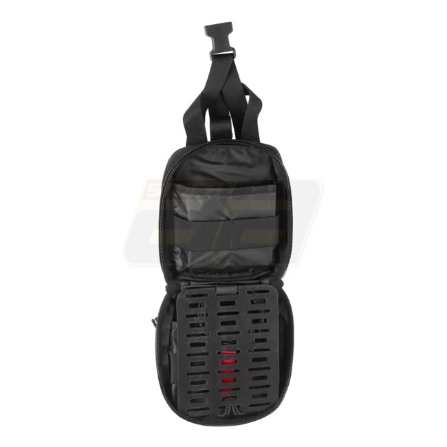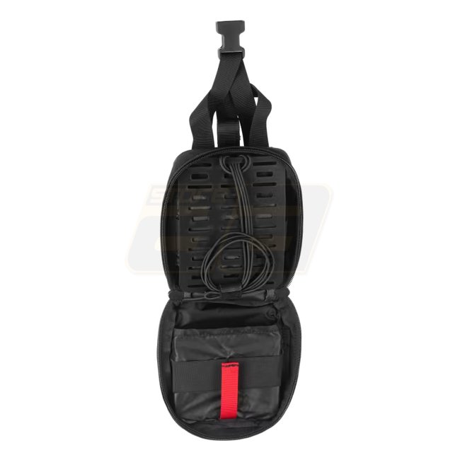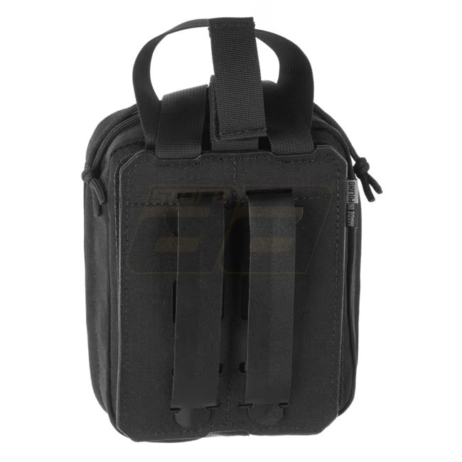 The AZ2 is a rip-away first aid pouch designed for quick access and secure attachment. The anchor panel attaches to load-carrying equipment using the MOLLE-compatible system, while the pouch itself is secured with Velcro and an additional strap with a fastex buckle. This setup ensures stable attachment and one-handed removal in emergencies.