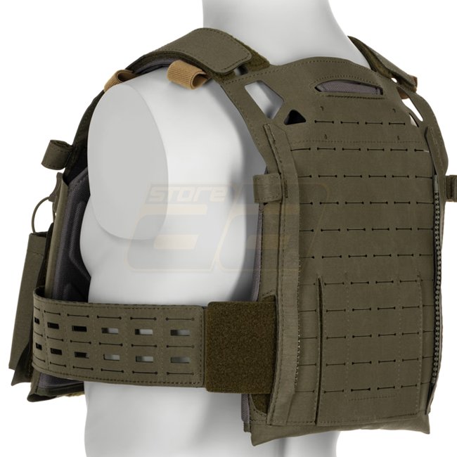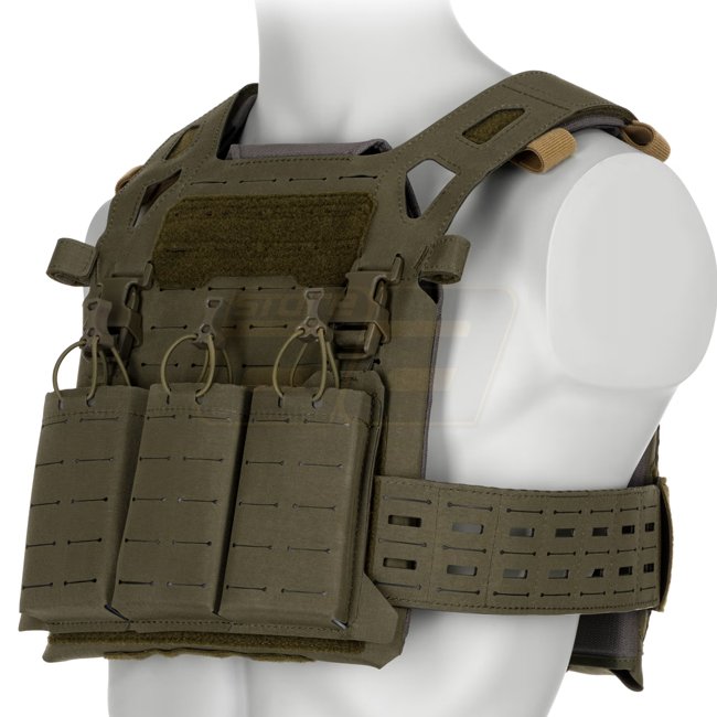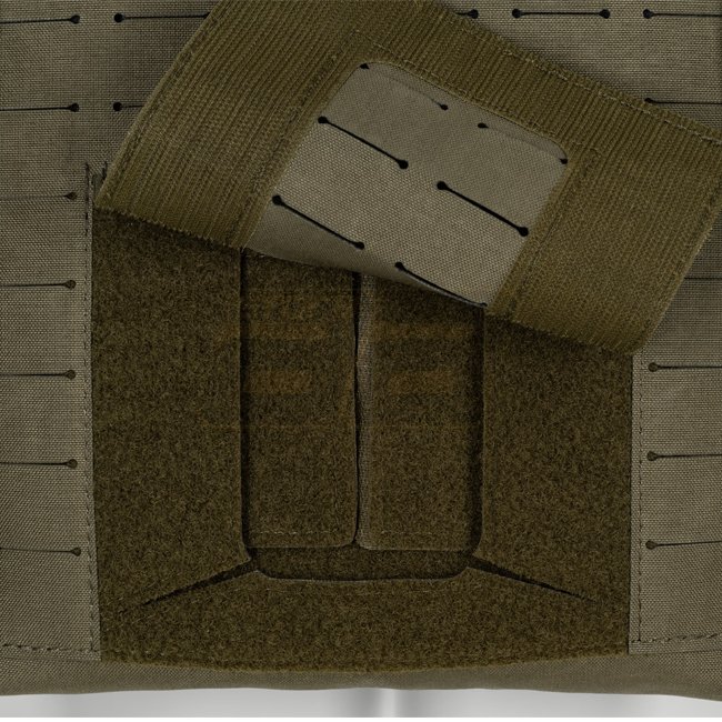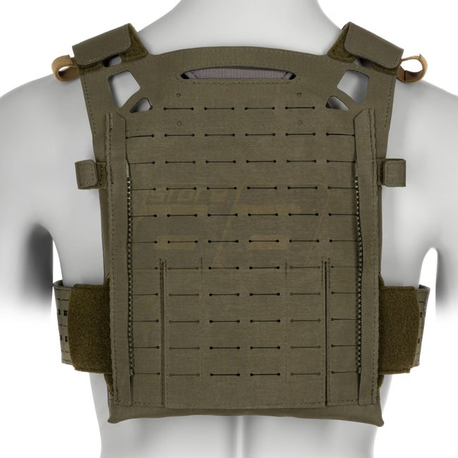 The plate carrier features padded shoulder straps for enhanced comfort and adjustable fit. Laser-cut technology significantly reduces weight without compromising functionality.