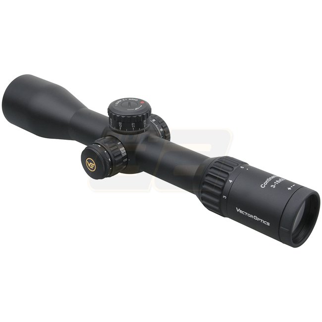 Upgrade your shooting experience with the Vector Optics Continental x6 3-18x50 VCT FFP Riflescope. This premium scope features a magnification range of 3-18x, a large 50mm objective lens diameter, and a sturdy 34mm tube size. With a VCT-34FFP reticle, 1/1