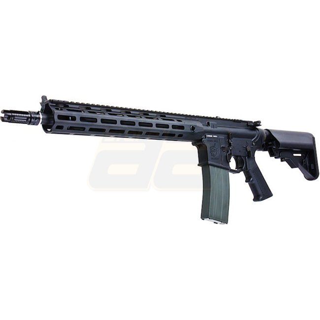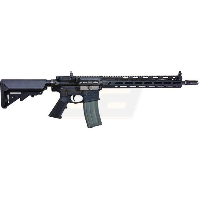 VFC KAC SR16E3 Carbine MOD2 Gas Blow Back Rifle V3 - Black is a high-quality airsoft gun with metal / polymer pistol grip. Features include a magazine capacity of 30 (6mm), a length of 810-885mm, a weight of 2784g, and a shooting mode of Semi Auto & Full