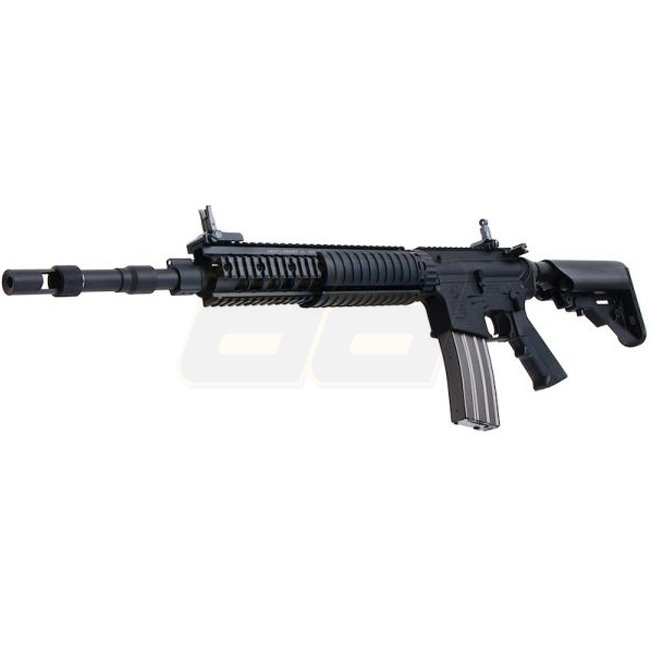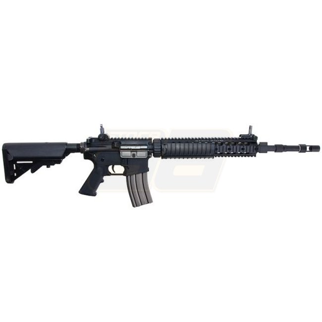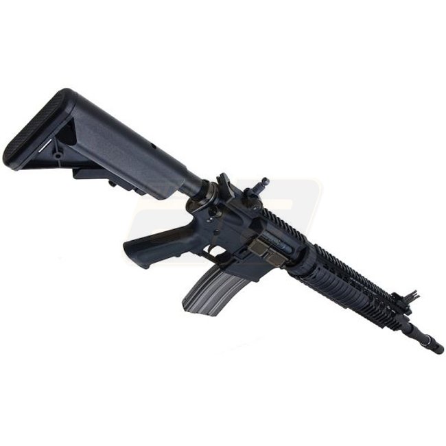 VFC MK12 MOD 1 AEG - Black is a premium airsoft rifle with metal gearbox, 300-round magazine capacity, and adjustable hop-up. Comes with customized motor, shooting distance of 48-50 meters, and shooting modes of Semi Auto & Full Auto. Package includes gun