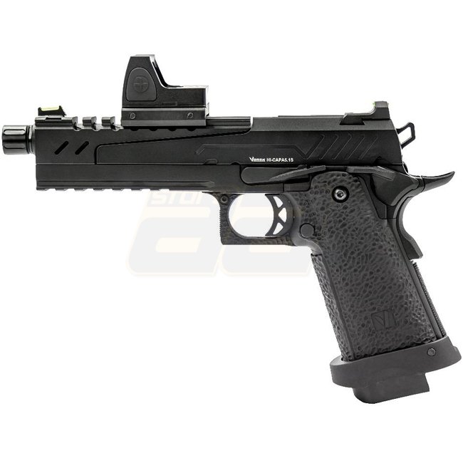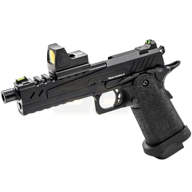 Vorsk Hi-Capa 5.1 Split Slide BDS Blow Back Pistol - Black. Metal/Polymer, 21rd mag, 240mm length, 980g weight, 115mm barrel, 330-350 FPS. Semi-auto, 45.27-48.02m range, adjustable hop-up. Package: Gun, Magazine, Red Dot Sight.