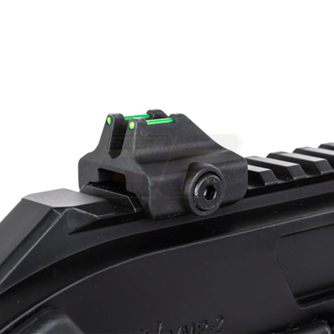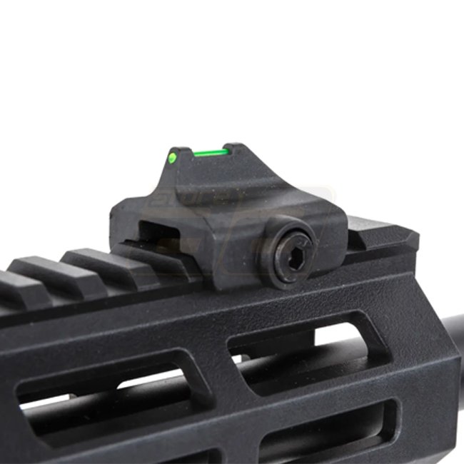 - Zubehörmontage: 20mm Flat-Top-Schiene mit vorderer und hinterer Fiber-Visierung, geeignet für Optiken und Zubehör am Handschutz