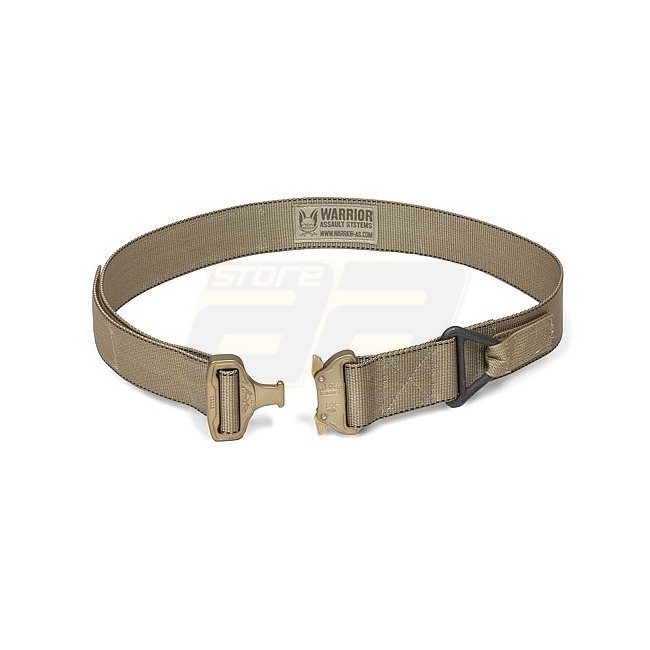 Warrior COBRA Riggers Belt in Tan, size L. Made from high-quality Mil Spec materials with a Cobra buckle for safety and strength. Perfect combination of stiffness and pliability, supporting holsters and drop legs without twisting.