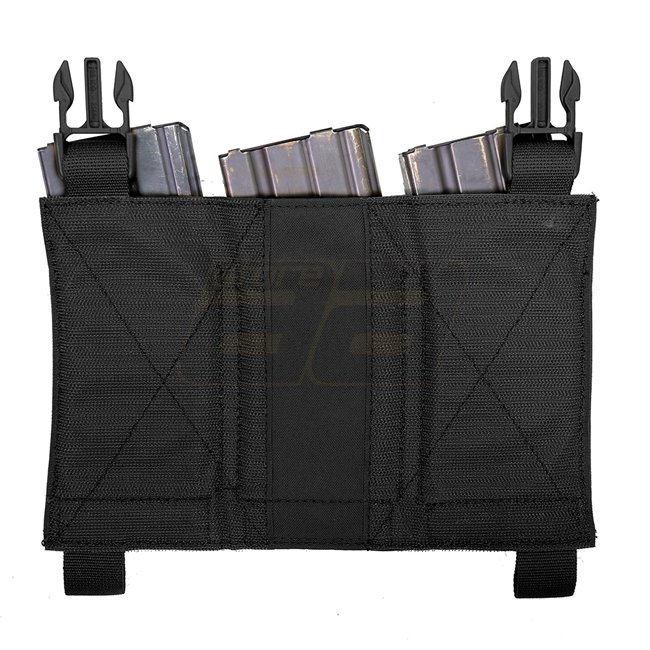 Warrior Detachable Triple Elastic Mag Pouch - Black: Low-profile detachable MOLLE front panel designed for rapid access speed reloads. Elastic pouches for M4 and P-Mags, versatile for various operational needs.