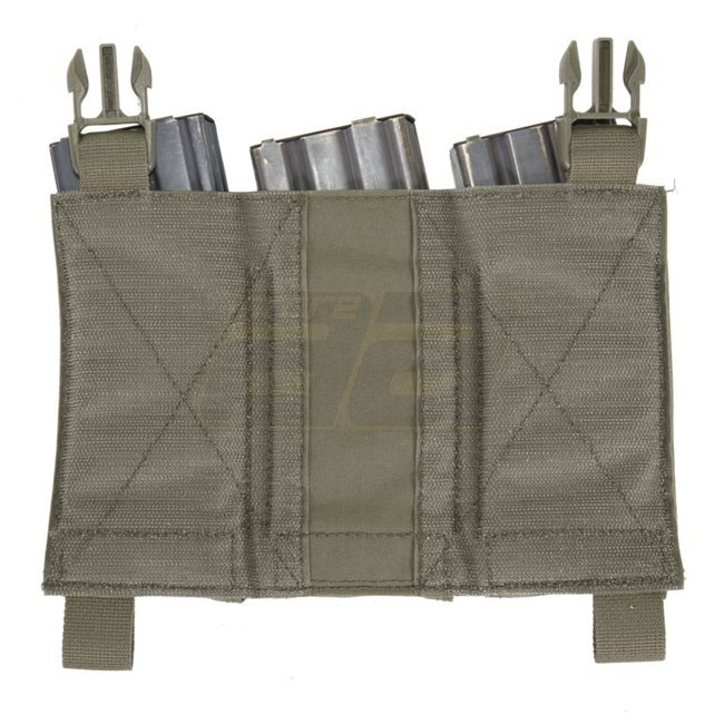 Warrior Detachable Triple Elastic Mag Pouch - Ranger Green: Removable MOLLE front panel for Warrior Recon Plate Carrier, elastic magazine pouches for M4 and P-Mags, versatile use, quick access, durable construction.