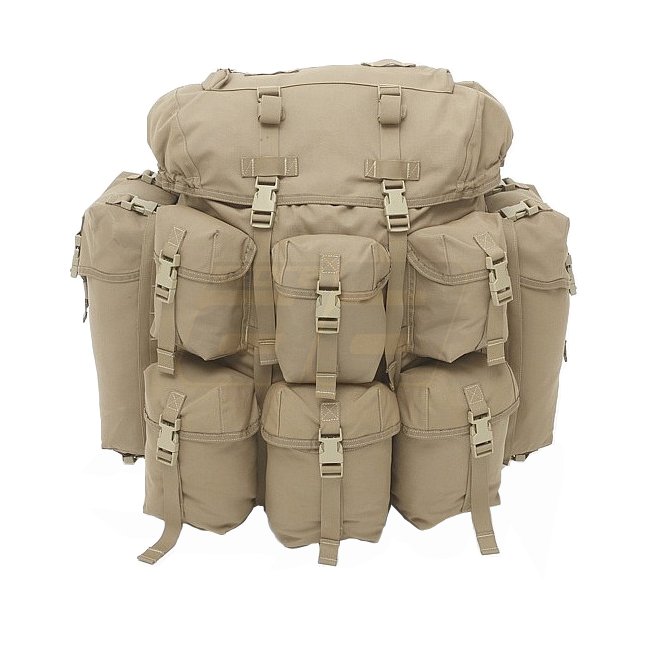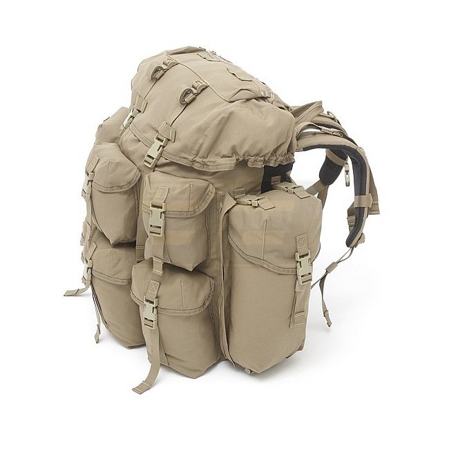 This SF Bergen features removable side pouches, an internal light weight aluminium frame, a large carry capacity of approximately 70l and is designed to be worn with belt kit. An awesome piece of professional kit, favoured by UK Special Forces.