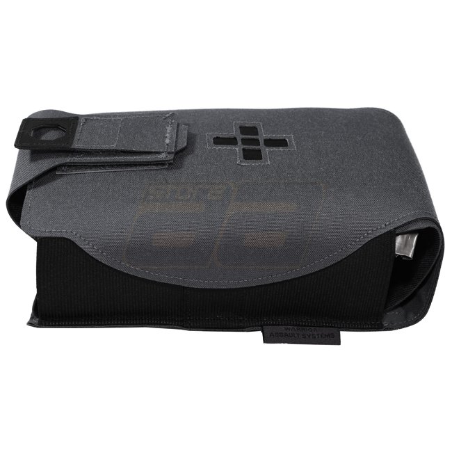 The Laser Cut Large Horizontal Individual First Aid Kit (IFAK) by Warrior Assault Systems is engineered to accommodate a comprehensive medical kit suitable for Special Forces operators. It securely holds multiple Combat Gauze, Chest Seals, CAT tourniquets, trauma bandages, and nasopharyngeal airways within a removable inner sleeve featuring elasticated pockets and loops for organized storage. The inner sleeve is easily accessible with a single hand via a Hypalon-coated pull tab, ensuring rapid deployment in critical situations.