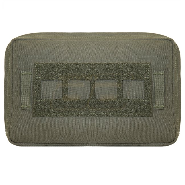 Warrior Laser Cut Large Horizontal Utility Pouch - Ranger Green, a versatile tactical storage solution with laser-cut MOLLE loops for secure attachments and internal elastic loops for organizing magazines and medical gear efficiently. Compatible with plat