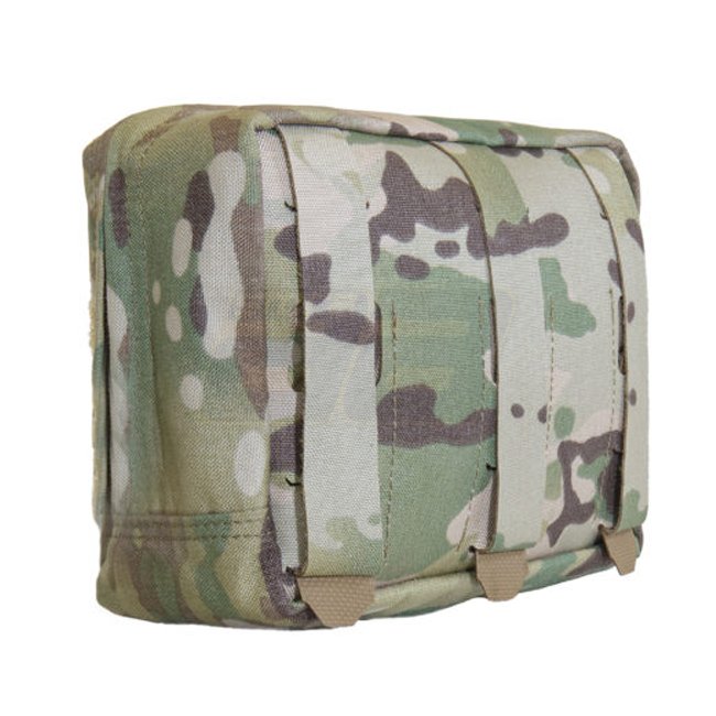 The Warrior Laser Cut Medium Horizontal Utility Pouch is a versatile storage solution designed for tactical gear. It is compatible with plate carriers, the Zip-on Assaulter Back Panel, load-bearing belts, and a range of medium and large tactical bags. The pouch features an external Velcro panel for patches and ID markers, as well as laser-cut MOLLE loops for additional attachments.