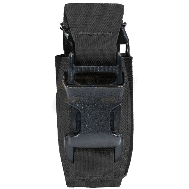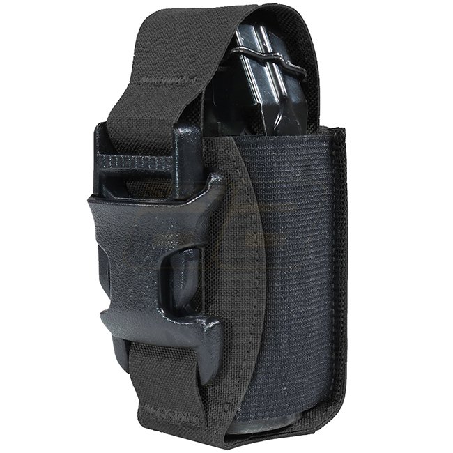 The Warrior Laser Cut Single 40mm Flash Bang Pouch in Black is perfect for securely storing and quickly accessing 40 mm grenades or flash-bangs, with a focus on lightweight, durable, and modular design for tactical operations.