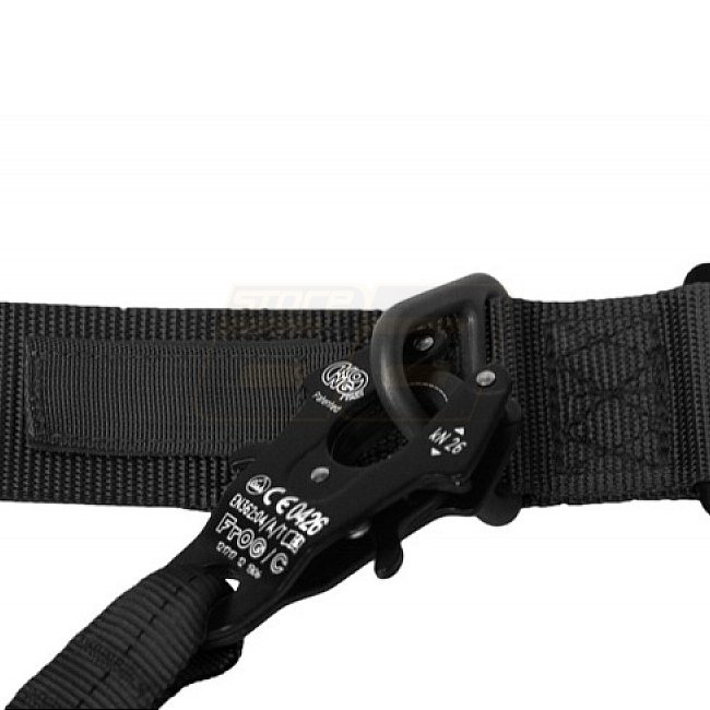 The Warrior Personal Retention Lanyard is designed for maritime operations and helicopter ops. It has an overall length of 84 cm (33″), including the FROG clip, and expands to 117 cm (46″). The FROG clip is made from high-grade aluminum, can be operated with one hand, and is tested to a load of 25 kN (5622 lbs).