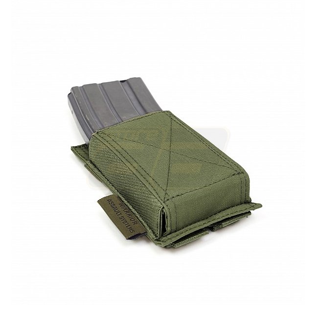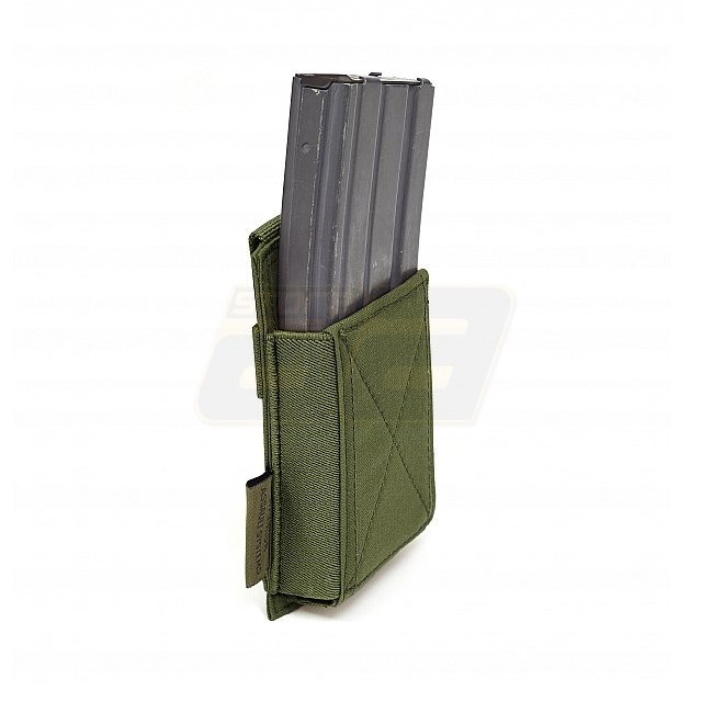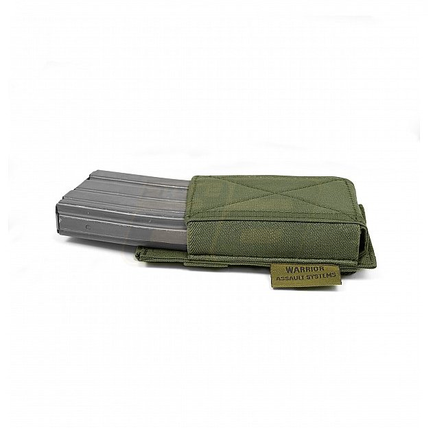 Low profile Warrior Single Elastic Magazine Pouch in Olive for quick and secure access during speed reloads. Fits M4, AK, and PMAGs.