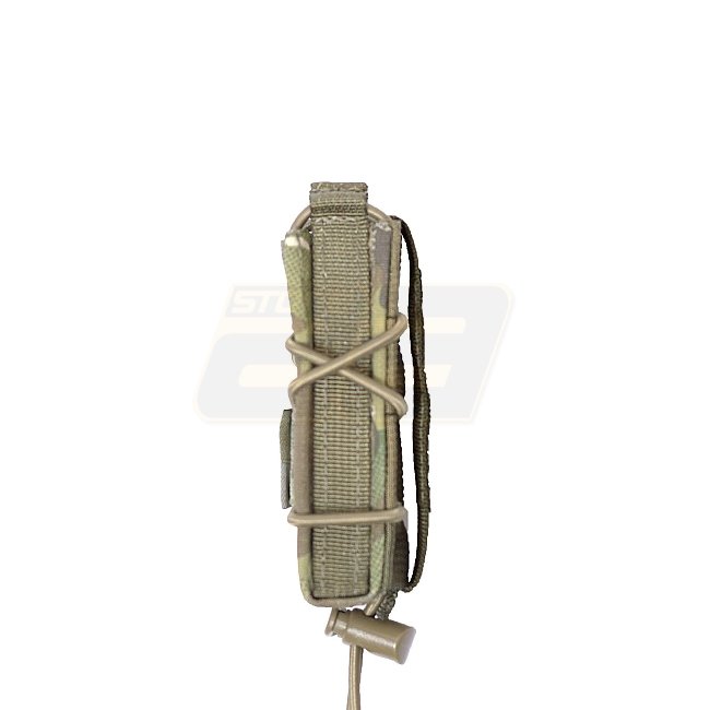 The Warrior Single Quick Mag Pouch is a versatile, multi-purpose pouch designed to hold a variety of 9mm pistol magazines. Size adjustment is made using elastic shock cords threaded through the sides of the pouch, ensuring a secure fit for the magazine.