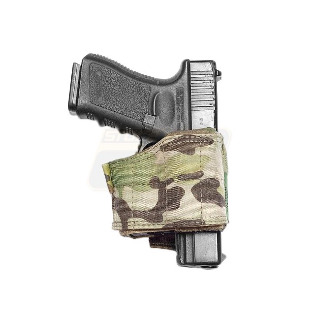 The versatile Warrior Universal Pistol Holster in Multicam accommodates small and large pistol frames like Glock 42 to Desert Eagle. Offers quick adjustment with Velcro, secure fixation with internal structure, thumb-operated release, and MOLLE webbing fo
