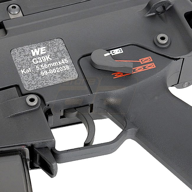 The WE G39K Gas Blow Back Rifle is a high-quality airsoft rifle featuring a durable construction with ABS plastic and metal parts. With a magazine capacity of 30 (6mm) rounds and a length of 685mm (874mm extended), this rifle offers great performance for