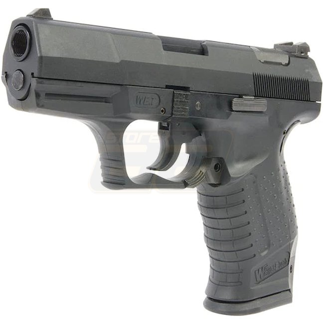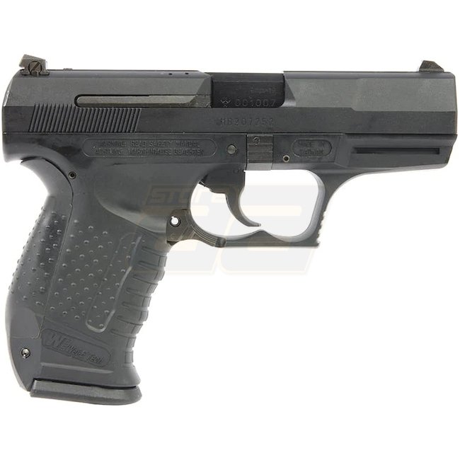 WE P99 Gas Blow Back Pistol - Black: Metal / Polymer, 24 (6mm) magazine capacity, 185mm length, 682g weight, 300-320 FPS, Semi Auto, adjustable hop-up. Package includes gun and magazine.