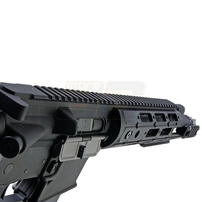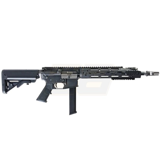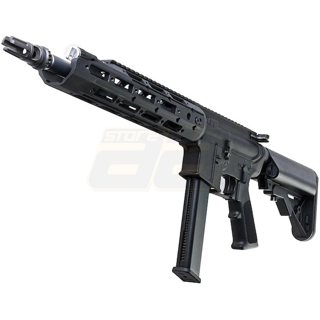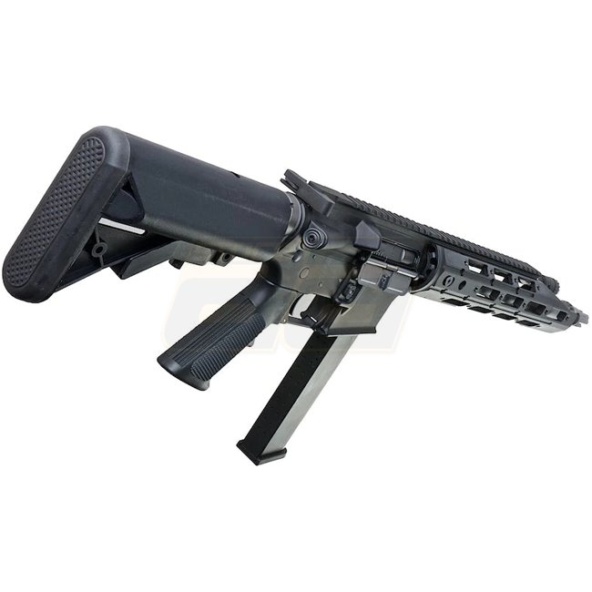 High quality WE RARS PCC Gas Blow Back Rifle in sleek black color. Semi Auto & Full Auto shooting modes, adjustable hop-up, and impressive shooting range of 49.39-52.13m. Includes metal/polymer pistol grip and a 50 round (6mm) magazine.