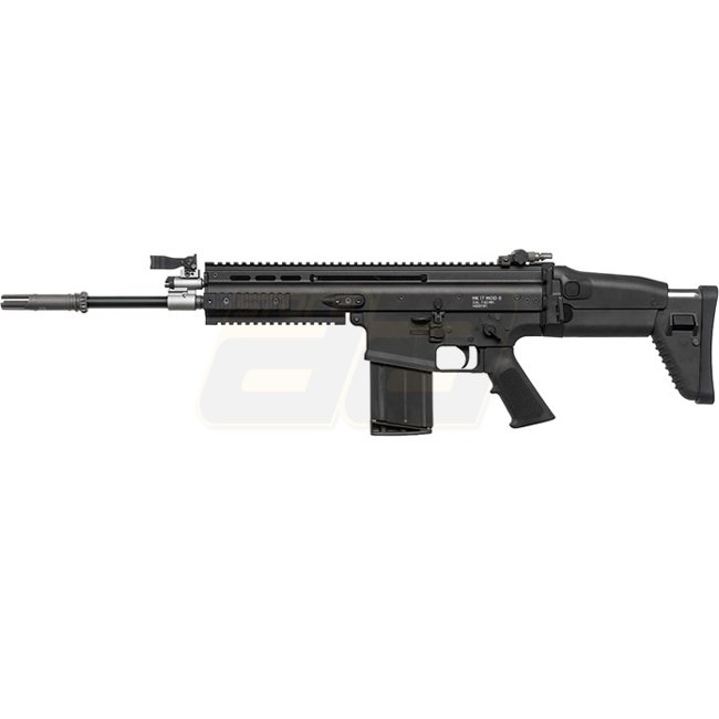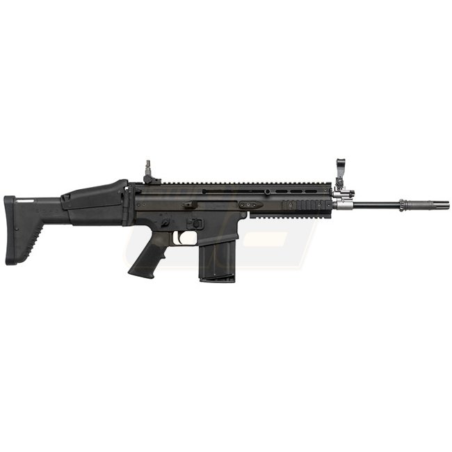 WE SCAR-H Gas Blow Back Rifle - Black is a durable and powerful airsoft rifle with metal lower receiver and plastic stock & pistol grip. Featuring a magazine capacity of 20 rounds, adjustable hop-up, and shooting modes of semi-auto & full-auto. Ideal for