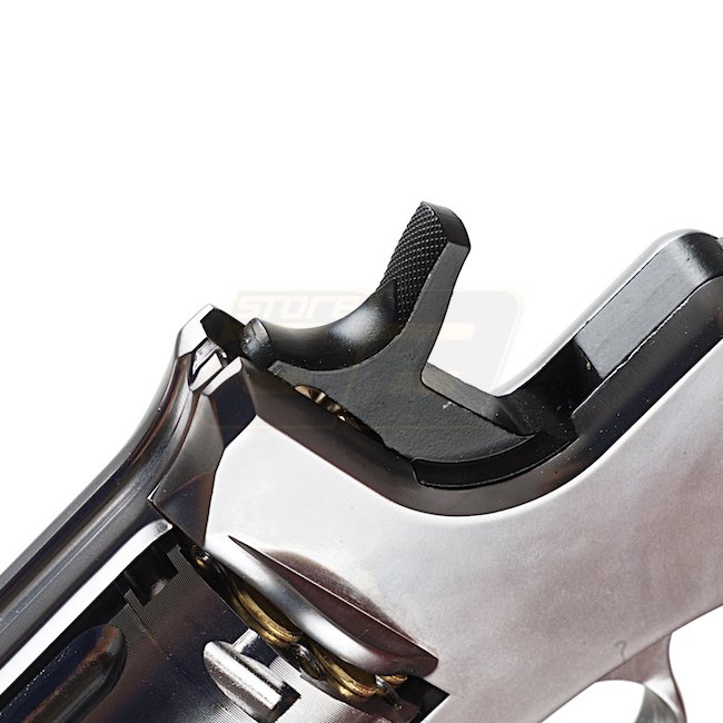 WinGun M1895 Nagant Full Metal CO2 Revolver - Silver. Metal / grip plastic, 7 (6mm) magazine capacity, 230mm length, 675g weight, 100mm inner barrel length, 380-400 FPS / 1.34-1.49 Joule muzzle velocity, Semi Auto shooting mode, 52.13-54.88m shooting rang