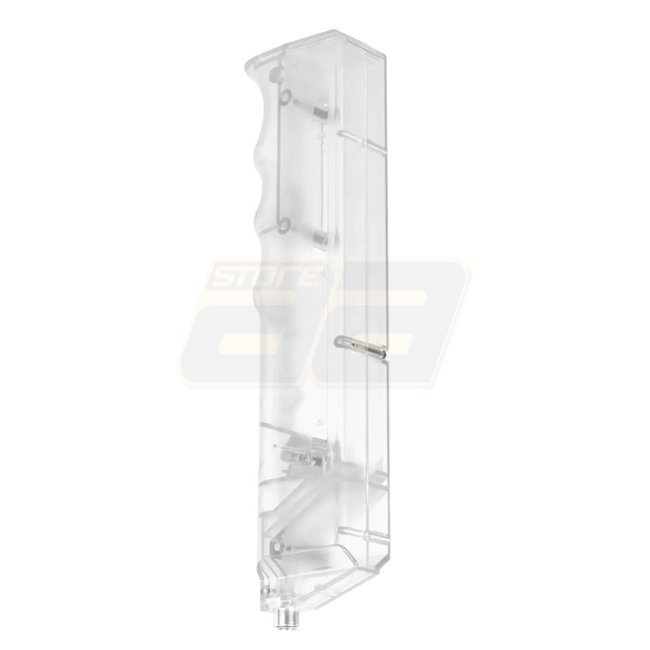 The Wosport EX‑0410 quick loader is made of durable transparent polymer and holds approximately 300 BBs at once. It works reliably with real‑, low‑ and mid‑cap magazines and includes several adapters. Its form mimics a PM magazine, making it easy to carry in suitable magazine pouches.